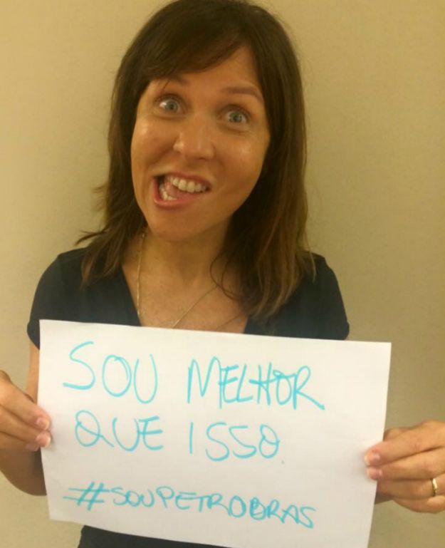Nas redes sociais, usando a hashtag #soupetrobras, empregados da petrolífera vêm postando, desde o início de quarta-feira, fotos de si mesmos segurando cartazes com a frase "sou melhor que isso #soupetrobras".