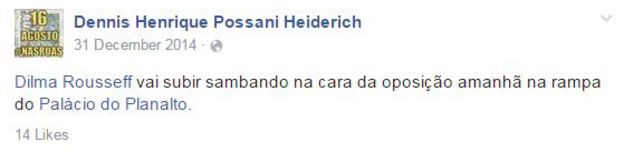 O Facebook do estudante reflete um processo rápido de "conversão". No dia 31 de dezembro de 2014, o estudante aparece em seu Facebook pintando faixas de apoio à presidente reeleita. "Dilma Rousseff vai subir sambando na cara da oposição amanhã na rampa do Palácio do Planalto", diz outra publicação no mesmo dia.