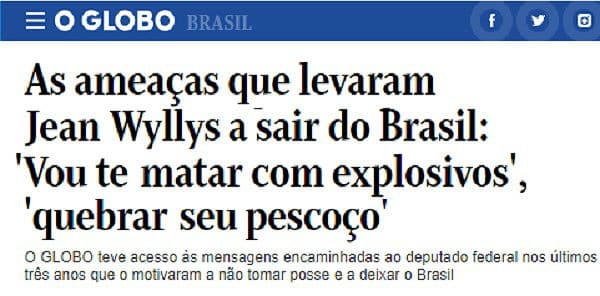 Se o General Hamilton Mourão acha “genéricas”, como disse, as ameaças feitas ao deputado Jean Wyllys, que o fizeram desistir de exercer o mandato, deveria pedir à Polícia Federal que lhe mandasse as cópias dos e-mails, mensagens e gravações de telefonemas que dizem toneladas de barbaridades, desde que irão explodi-lo, estuprar e decapitar seus parentes e até esquartejar sua mãe.