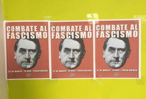 | Cartazes no Chile comparam Bolsonaro a Hitler |
