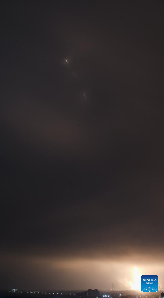Um foguete Longa Marcha-5 transportando um novo satélite de teste de tecnologia de comunicação é lançado do Campo de Lançamento Espacial de Wenchang, na Província de Hainan, no sul do país, em 20 de dezembro de 2025. (Xinhua/Yang Guanyu)
